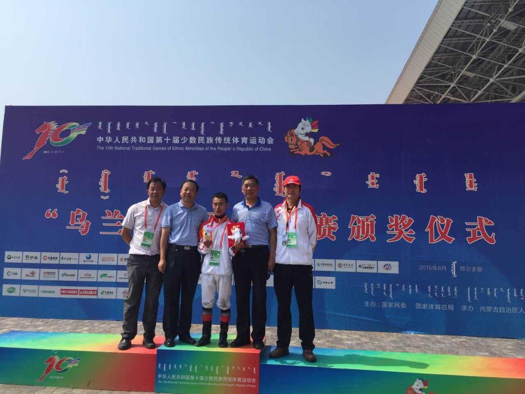 本网内蒙古鄂尔多斯12日快讯 今日上午,在第十届全国少数民族运动会民族赛马2000米比赛中,公司代表队覃勇一马当先,勇夺第一名...