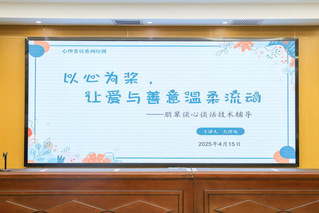 图1左宇凡老师开展演讲左洋凡老师以以心为桨,让爱与善意温柔流动为主题,通过理论讲授+情景模拟+互动体验的多元化教学模式,系统讲解了朋辈心理辅导的沟通技巧。培训中,...