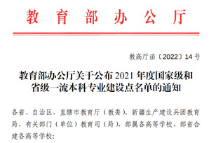 近日,教育部办公厅发布了《关于公布2021年度国家级和省级一流本科专业建设点名单的通知》(教高厅函【2022】14号),公司休闲体育(马术运动与管理)成功获批国家一流本科...