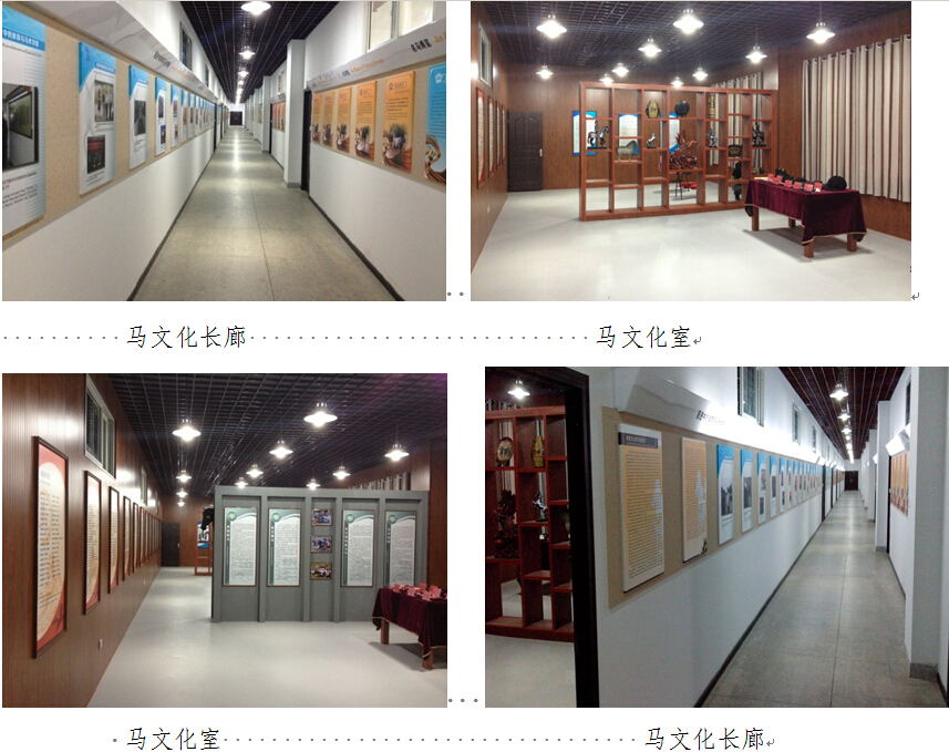 马文化室建筑面积约120平米,设备价值约17,840元,教学仪器设备有马文化文字介绍、骑乘装备与用具等,主要用于马文化的展示以及马文化传播等课程的教学与实践。