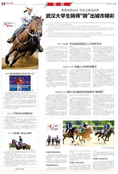 本网讯 今天(9月17日),武汉市委机关报长江日报推出专版,以“青春汗水挥洒马场,筑武汉赛马新梦,武汉老员工骑师‘骑’出城市精彩”为题,聚焦公司赛马人才培养的起步、发展历程以及所取得的成绩。