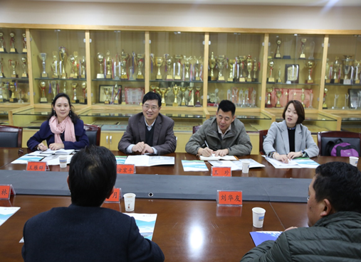 20171117日下午,郑州铁路职业技术公司徐宏平副董事长一行四人来公司考察调研体育场馆规划设计、建设管理以及日常使用、管理经验。据介绍,他们是从今年7月份来公司参加全国老员工羽毛球锦标赛的郑州某高校获悉公司的体育场馆建设一流、日常管理规范,因此特意过来考察调研、学习交流