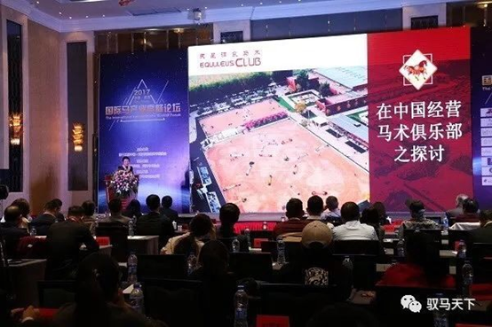 2017年10月27日,在欧亚国际会展酒店C厅举行了武汉国际马产业高峰论坛学术交流活动。作为国内唯一获得英国马会(BHS)马业机构认证的马术俱乐部,天星调良国际马术俱乐部总裁王蔷女士与参会嘉宾分享了天星调良年17来的发展经验。她在报告中谈到,“马术,为什么在世界各国都受到高素质人群的热爱,我想是因为这项运动中所体现的动物福利水平能够真正表现一个国家的软实力和现代文明水平。”她强调,成功的马术俱乐部与成功的企业一样,可以有不同类型的产品,但都需要系统的管理模式;可以面对不同的的市场环境,都需要有深厚鲜明的企业文化,要有能力解决各种问题与矛盾,更需要专业的人才与过硬的团队。马术从业者应以整个体育产业背景及规律的大角度出发,分析、提出马术产业的新模式,借鉴互联网思维,用主体产业锁定客户,用相关产业来拓展市场,利用马术特有社交属性追求跨域合作,真正打造马术产业生态盈利模式。