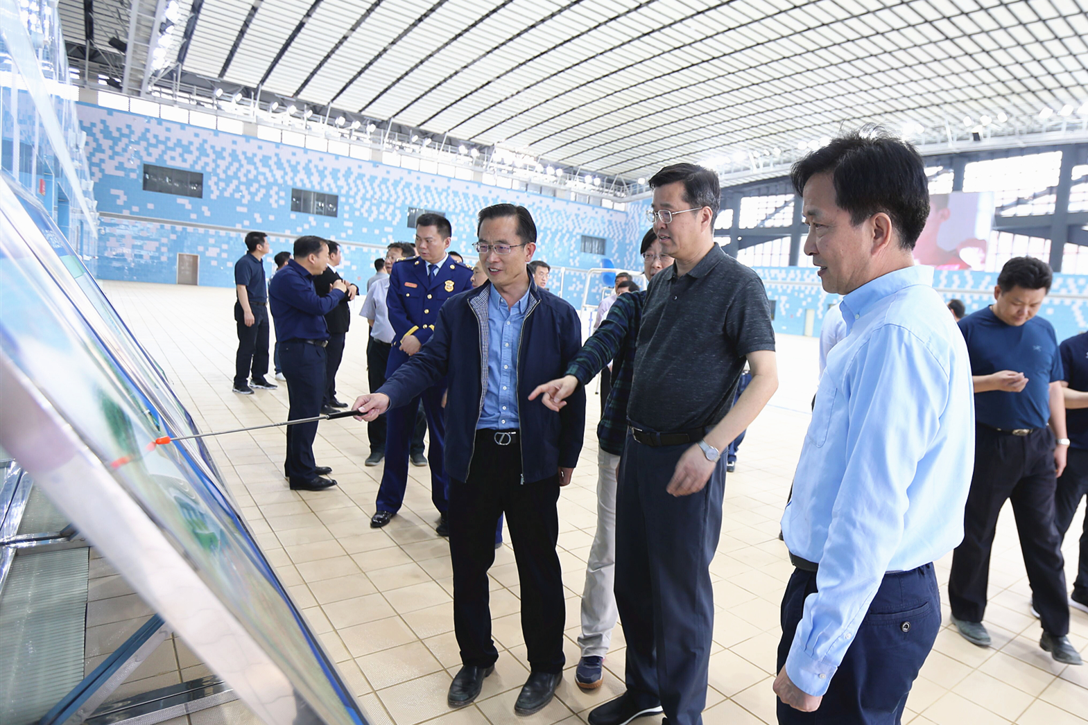 陈邂馨对公司军运会场馆建设工作表示认可,并表示希望公司要在军运会场馆完工验收的基础上,继续完善细节、做好配套设施的完善工作。同时也期望公司以高水平、高质量、高效率、高强度迎接两项测试赛,全力做好军运会筹办各项工作。