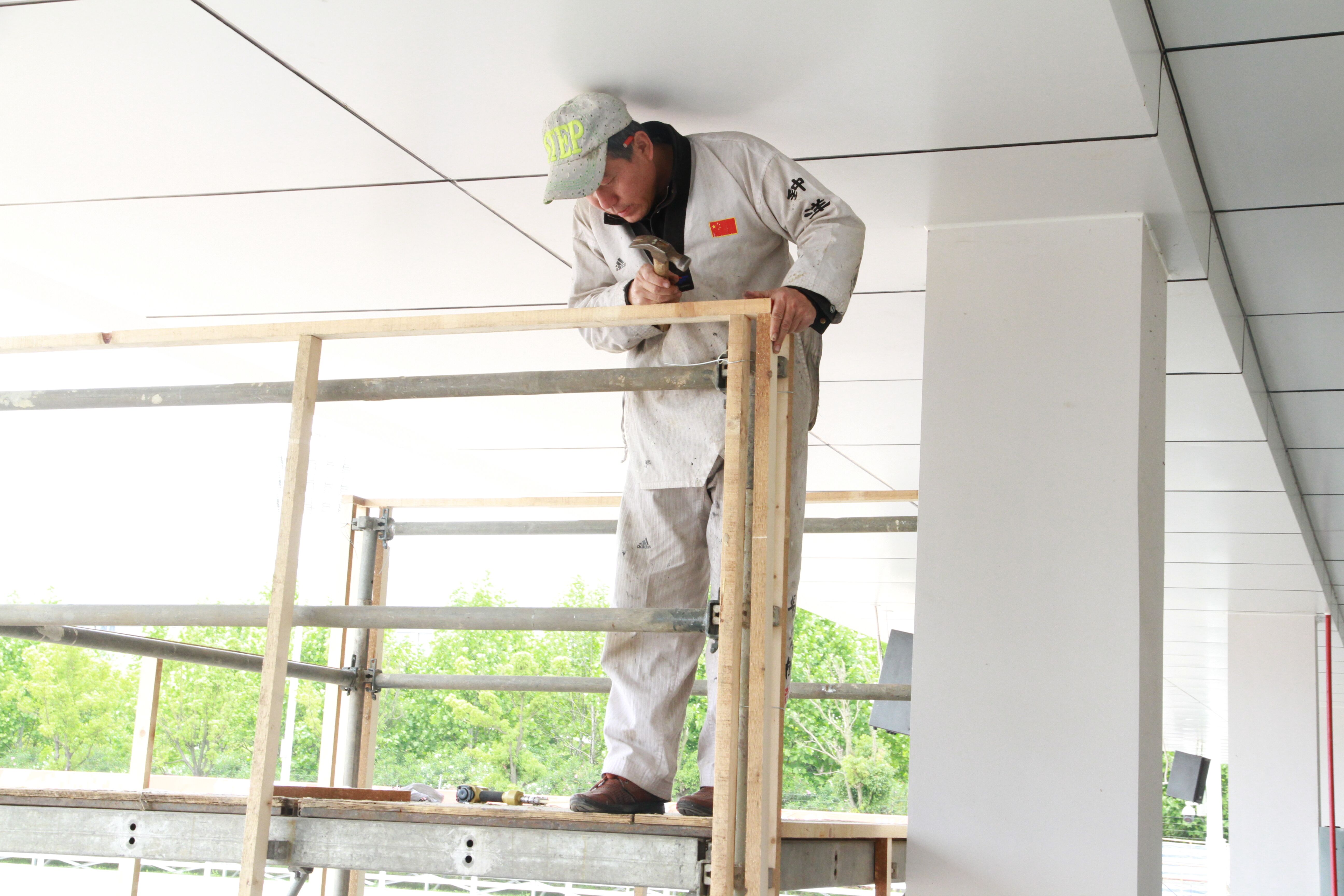 除此以外,驭马体育公园内的工人正在组装和加固展示架、展示牌,进行布置工作的细节完善。安保指挥室、电视转播机房、弱电室等工作人员都在实时调节。