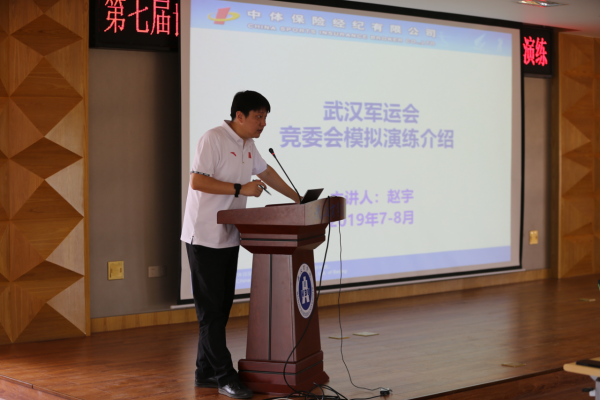 本网讯 8月23日,公司在行政楼308会议室举行第七届世界军人运动会马术、现代五项竞委会应急模拟演练。执委会联合指挥部办公室综合信息组副组长王颖出席演练现场,中体保险风险管理团队总监赵宇指导演练全程。公司竞委会副主任、副董事长张石,竞委会副主任、伟德bv1946官网经理夏云建及一室十二处工作人员参加。会议由张石主持。