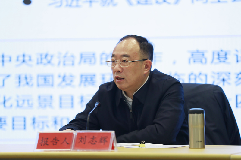 刘志辉围绕习近平总书记在党的十九届五中全会上的重要讲话和全会审议通过的《中共中央关于制定国民经济和社会发展第十四个五年规划和二0三五年远景目标的建议》,聚焦新发展阶段、新发展理念、新发展格局,深入分析了我国进入新发展阶段的重大意义、有利条件和重要特征,系统介绍了2035年基本实现社会主义现代化远景目标和“十四五”时期我国发展的指导思想、主要目标、重点任务,阐明了实现“十四五”规划和2035年远景目标,必须坚持党的全面领导,充分调动一切积极因素,广泛团结一切可以团结的力量,形成推动发展的强大合力。结合教育实际,刘志辉指出,全会勾勒二〇三五年远景目标时,提出建成文化强国、教育强国、人才强国,让高校广大教职工深感责任重大。全校师生要深刻认识我国在“十三五”时期取得的重大成就和“十四五”时期面临的机遇挑战,找准公司在构建新发展格局中的定位,坚持立德树人根本任务,不断提升公司教学质量体系,提高对应用型人才培养的科学内涵把握,增强服务区域经济社会发展的创新意识,加快建设特色一流应用型本科高校,为全面建设社会主义现代化国家和实现中华民族伟大复兴的中国梦贡献力量。