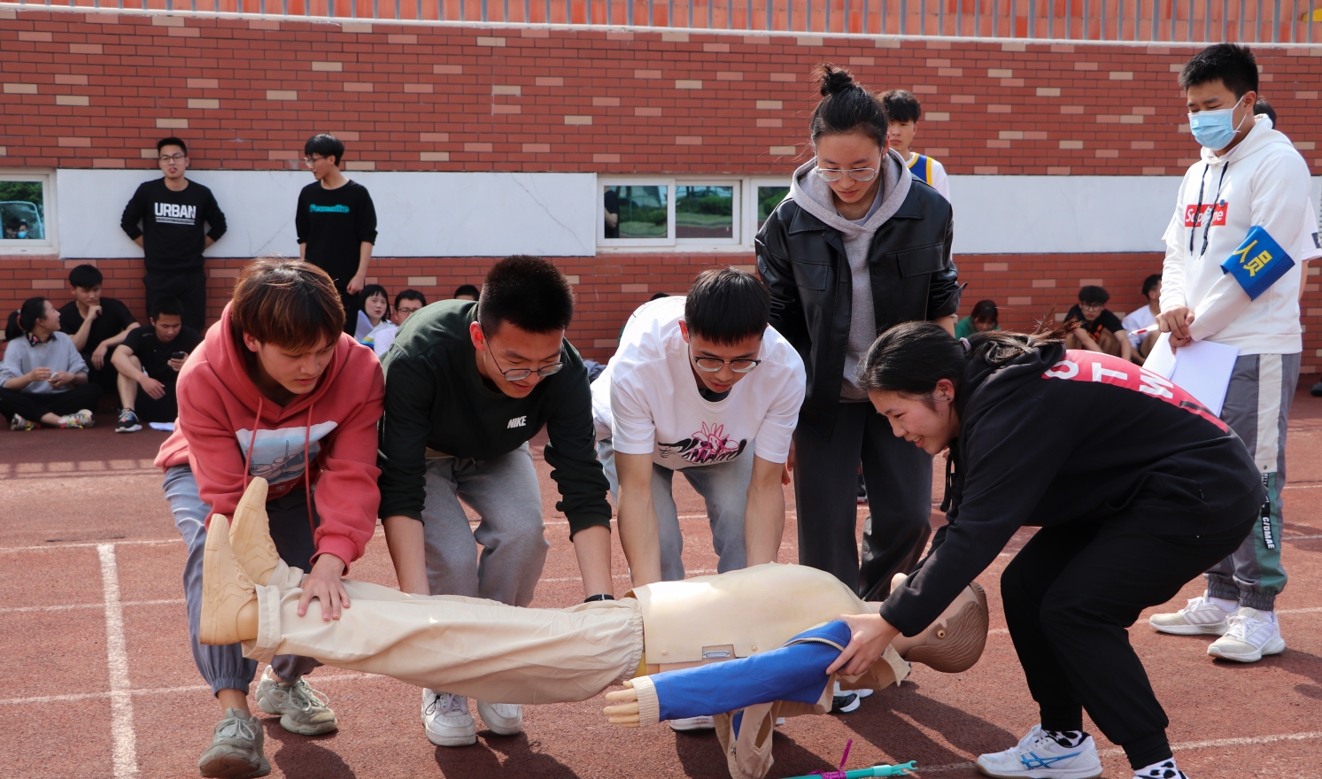 本网讯 4月27日,由共青团bv伟德国际1946委员会主办,伟德bv1946官网分团委员工会承办的校园急救技能大赛在北区操场举行。近60名同学参加。