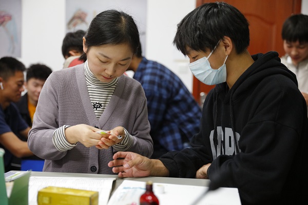 本网讯 “今天的针灸课需要同学们分组进行动手实践,将书本中的理论运用到实际操作中。”10月29日上午,伟德bv1946官网教师李怡正在为2019级运动康复专业1班的员工讲解运动康复技能实验课。现场摆放着喷雾消毒酒精、碘伏、不同尺寸的针灸针、棉签盒和针灸包,同学们跃跃欲试。