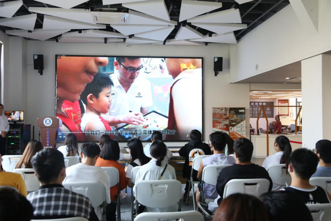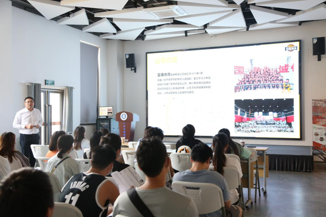 招聘会上,上海呈康体育招聘人员通过播放宣传片、展示PPT、面对面交流等方式向同学们介绍关于我们、岗位需求以及员工发展路径,结束时有十余名同学投交了简历。