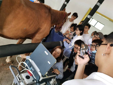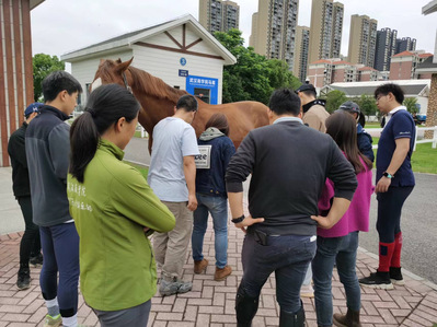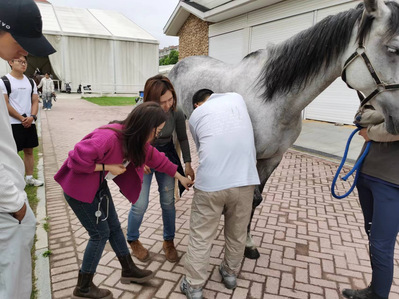 5月6日上午8:30--12:00在驭马公园,彭老师依据马匹情况系统地讲解马匹疾病诊疗过程中的问诊、触诊、听诊以及影像学检查方法。
