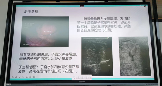 2023年5月5日上午8:30--9:30,彭老师在北四214教室开展超声理论知识培训,彭老师对超声原理以及针对马匹不同部位超声操作进行讲解,彭老师从马匹基本解剖结构到超声结果图以及正常图像和病理变化图像进行对比讲解,彭老师的讲解深入浅出,让员工们易于理解和吸收知识,课后员工们表示学到很多实用的理论知识点。