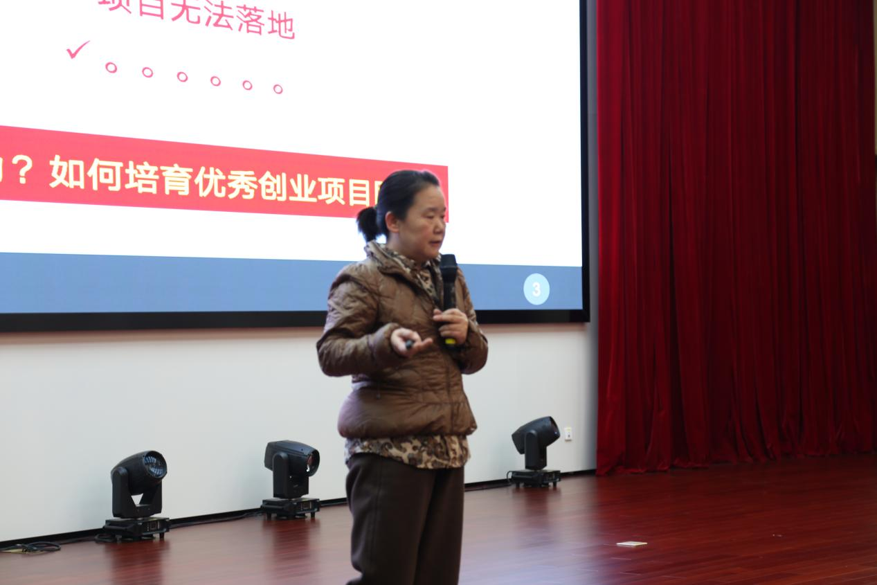 她分析老员工参加创新创业大赛项目的关键因素和技巧,并通过分享自己的经历,总结创新创业的整体思路,围绕老员工培养的创新创业能力,和抓住新创业机遇这一重要内容,重点解读了当前的创业趋势,引导同学们对自己进行反思定位,鼓励大家踊跃投身创新创业,积极参赛。