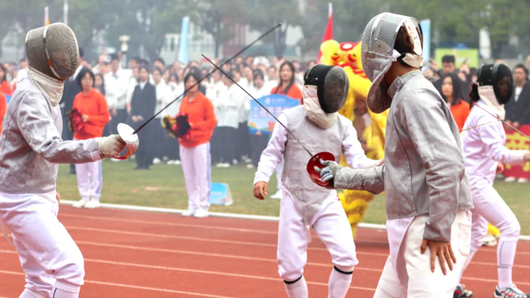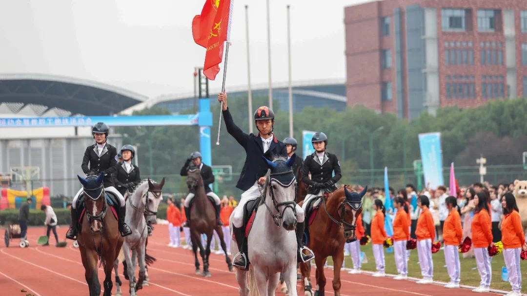 马术方阵由该校马术专业教师于程昊和9名伟德bv1946官网的员工组成,他们身骑白马,手举红色校旗,气势高昂地策马而来,环绕操场一圈后,马儿在骑手的指挥下加速、跳跃,做了一个后体屈挠动作。除了马术方阵,创意方阵也颇有看头,舞狮表演激情澎湃,高跷队的员工身踩高跷依然灵动自如,击剑队现场展示了让人屏气凝神的击剑秀,龙舟队队员个个精神饱满,用整齐划一的动作完成旱地龙舟。