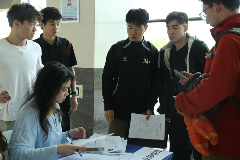 图3 伟德bv1946官网志愿者为各个队伍进行检录