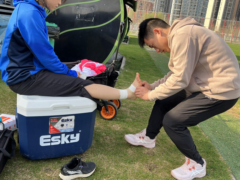 大四期间,张骏铮进入武汉市职业足球运动队实习。这段经历成为他备考路上的加速器:白天跟随队医参与运动员体能训练与伤病防护,晚上复盘总结专业知识,将运动康复理论与足球专项训练深度融合。实习让我明白,专业知识只有落地实践才有价值。他感慨道,扎实的实习经历不仅提升了专业技能,更让他在备考专业课过程中事半功倍。