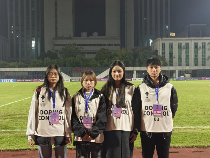 依据公司运动康复专业与武汉市足球运动管理中心签订的康复医疗保障服务协议,此次赛事公司共有六位同学参与志愿服务工作,其中23级张娜娜、24级班丽璟、谭朝霓、姚语蝶四位同学全程参与赛事医务官兴奋剂采样辅助工作,23级鲁佳慧、杨焓蕴两位同学负责所有技术官员、裁判员的医疗康复治疗服务工作,在赛事中她们严格遵守兴奋剂检测程序和国际检测标准,在赛事官员指导下,顺利完成样本采集、信息登记等关键任务;为赛事技术官员、裁判员提供精准康复方案、康复治疗技术服务,凭借扎实的专业知识和严谨认真的工作态度,赢得了赛事组委会、赛事官员以及参赛队伍的一致肯定和好评。